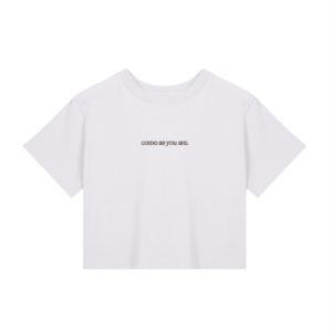 Made from 100% breathable cotton with a slightly stretchy feel, it features a loose, cropped fit perfect for layering or styling on its own during warmer seasons. Ideal for everyday wear or as a casual statement piece for events, movement, or downtime.